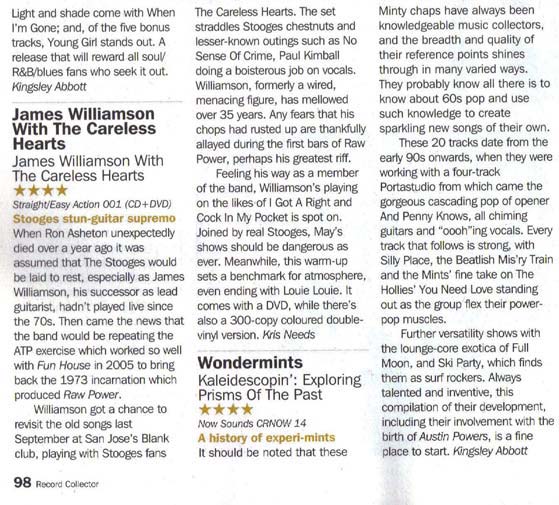 The first review of James Williamson and the Careless Hearts on Easy Action UK from Record Collector Magazine!